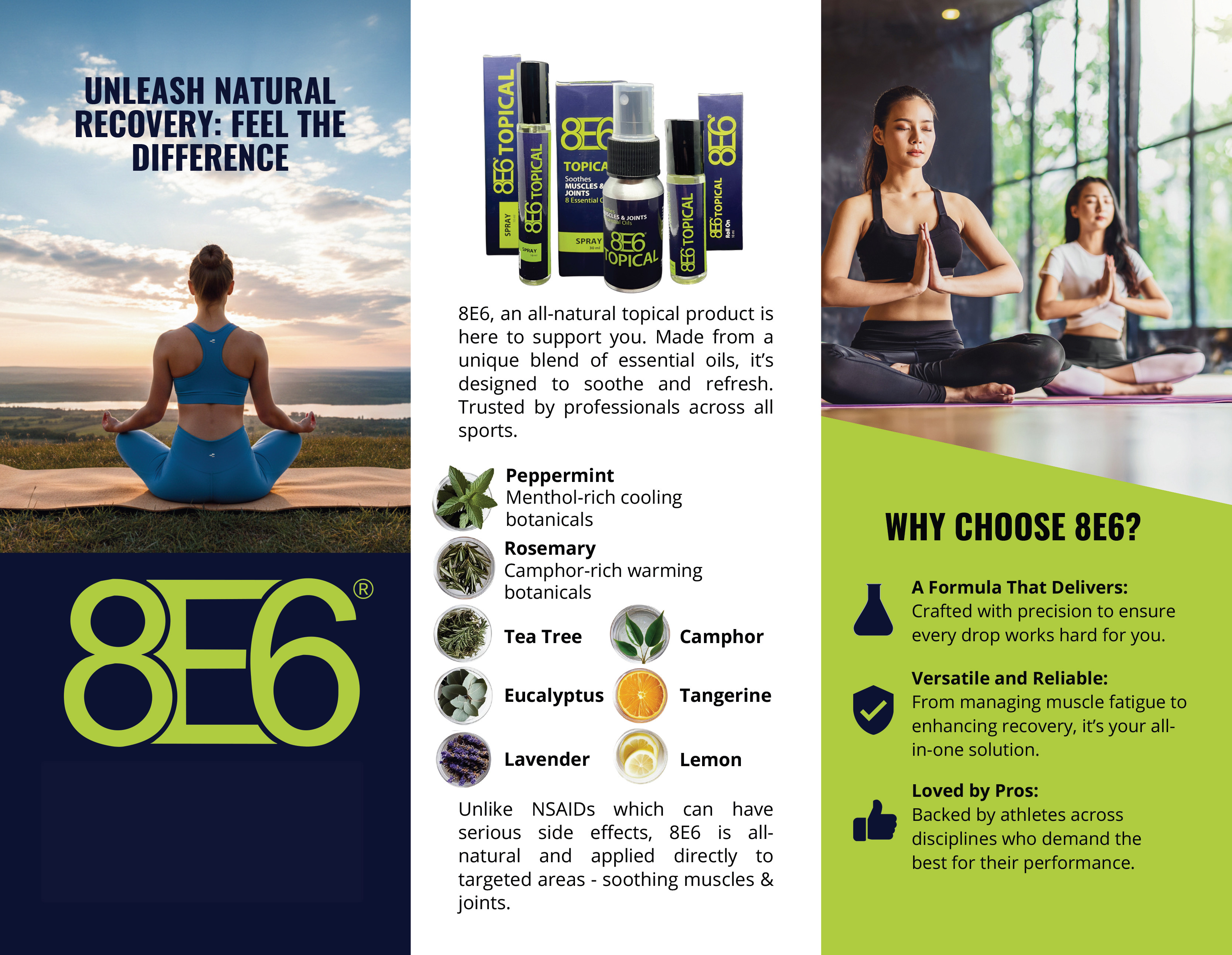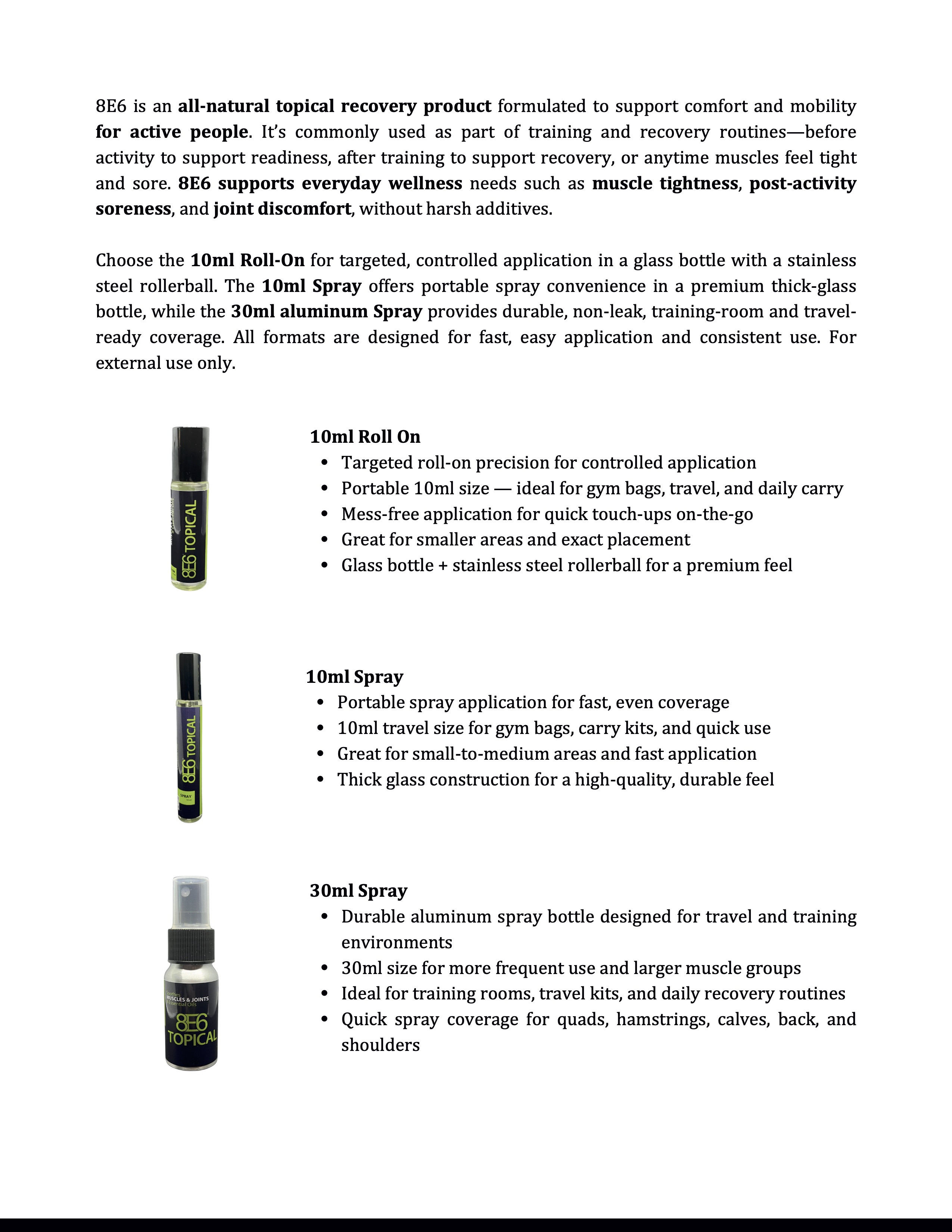 8E6, an all-natural topical product is here to support you. Made from a unique blend of essential oils, it’s designed to soothe and refresh. Trusted by professionals across all sports.